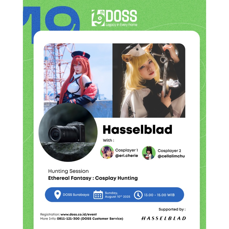 Ethereal Fantasy: Cosplay Hunting - DOSS Anniversary Special Event Buat kamu yang suka dunia cosplay dan ingin eksplorasi foto bertema fantasi, event ini sayang banget kalau dilewatkan!Di sesi hunting ini, kamu bisa langsung motret dua cosplayer : @eri.che