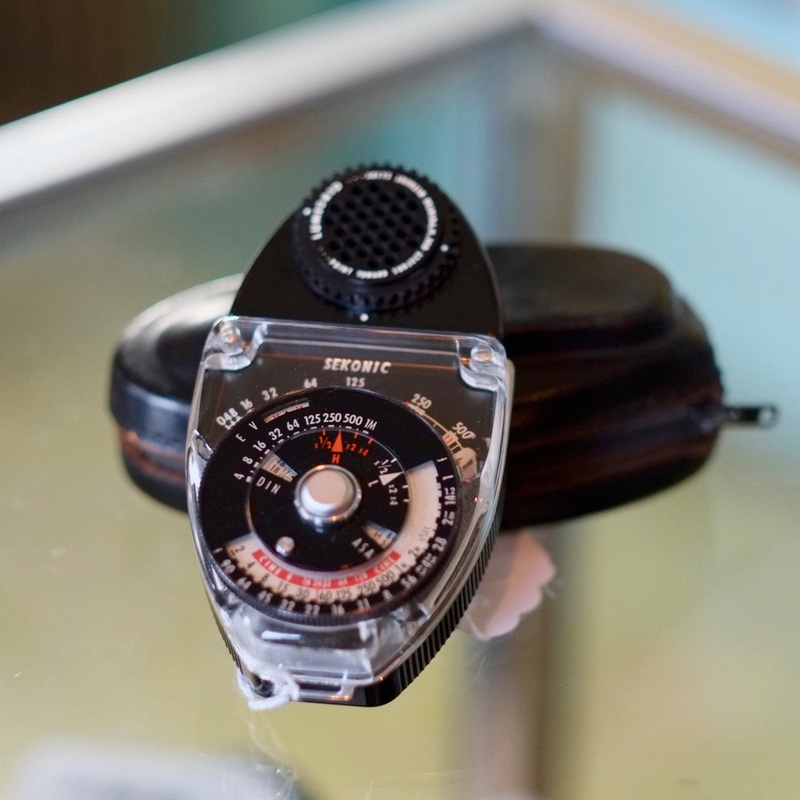 The Sekonic Studio Deluxe L-28C2 is a classic battery-free light meter. These normally include a dome (for incident light measurement) and a Lumigrid for reflected light measurement; this one includes only the Lumigrid. It's otherwise is very good conditio