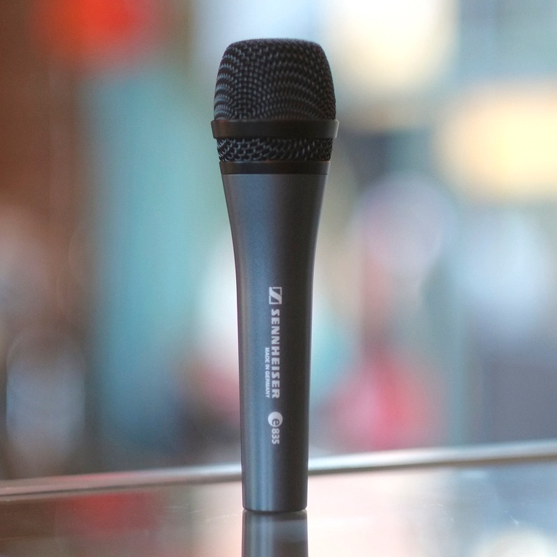 The Sennheiser 835 is a rugged, well made handheld microphone with an XLR connection. No on/off switch: this one's hot all the time, so watch yer mouth. In excellent condition. Includespouch and 2m XLR cable.