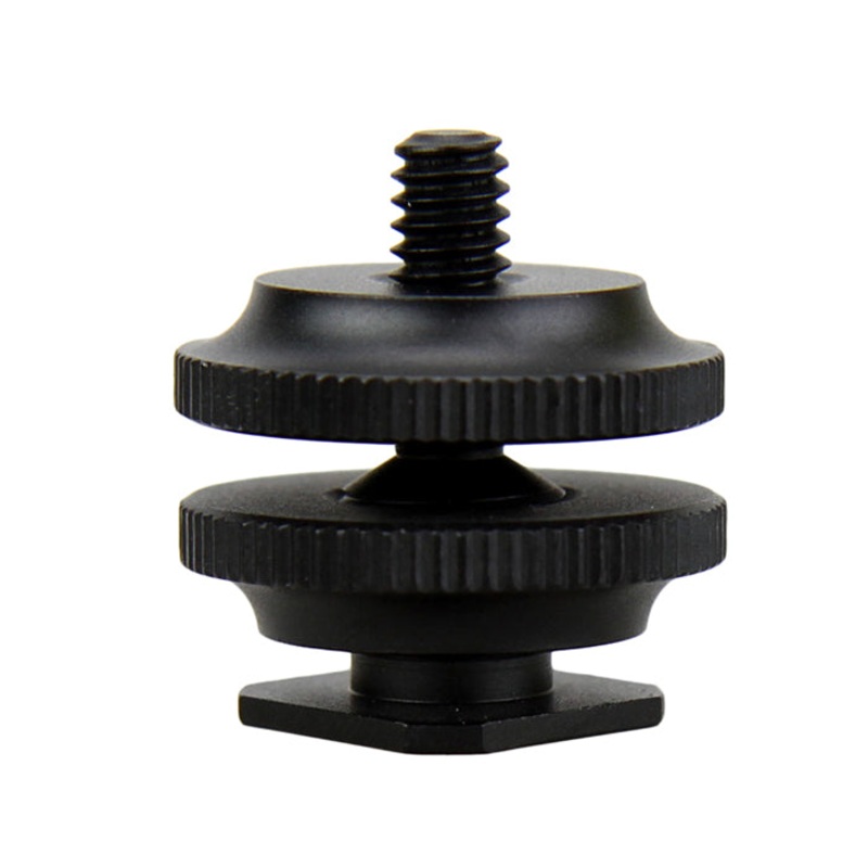 converts the camera hot shoe mount to a 1/4″-20 male post