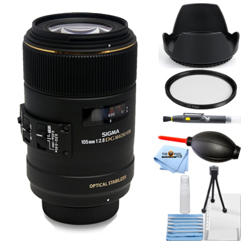 Sigma 105mm f/2.8 EX DG OS HSM Macro Lens for Canon EF – 7PC Accessory Bundle