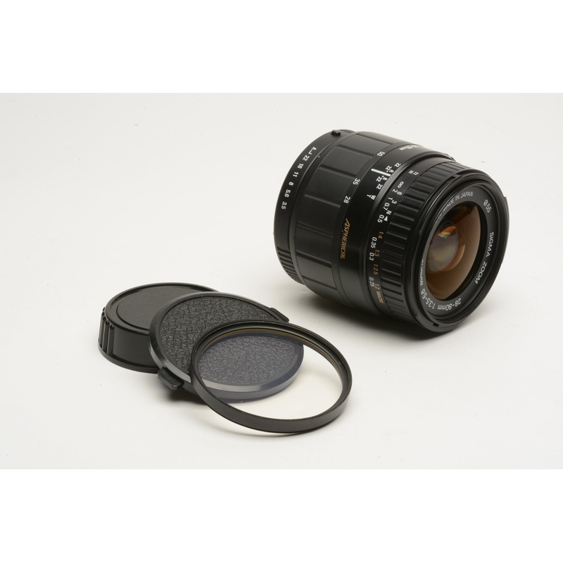 Excellent++ ConditionSigma AF 28-80mm f3.5-5.6 Macro zoom Aspherical lens, Pentax PK Mountw/Caps +UV filterSerial #1034160Cosmetically shows light marks or scratches. still greatNice and clean glass, no marks or scratches, no mold, haze or internal dustSol
