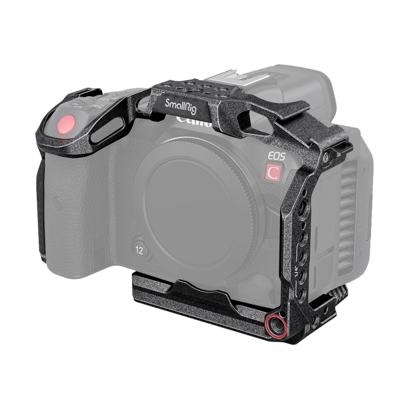 TheSmallRig “Black Mamba” Camera Cage for Canon EOS R5 C/R5/R6 provides additional protection as well as additional mounting options for your Canon EOS R5 C, R5 and R6. The cage offers a sleek, rough black with carbon fibre-style accents. The design features full access to your camera body ports and controls.