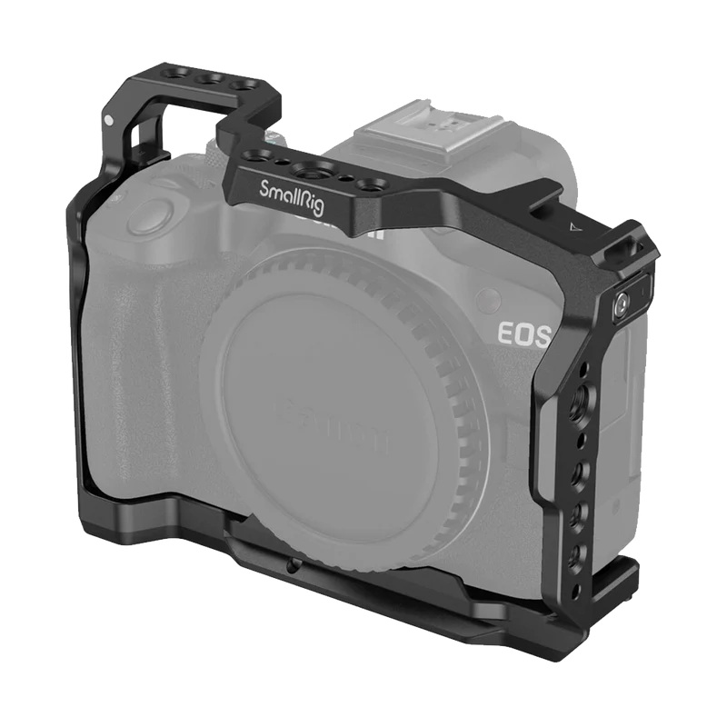 Elevate your Canon EOS R50 with the SmallRig Full Camera Cage, offering robust protection and versatile accessory mounting options. Equipped with multiple 1/4″-20 and 3/8″-16 threads, a cold shoe mount, and a NATO clamp, it enables flexible customization. Seamlessly transition between handheld, tripod, or gimbal setups with the Arca-Swiss QR plate, and add a shoulder strap for enhanced mobility through the integrated QD socket.