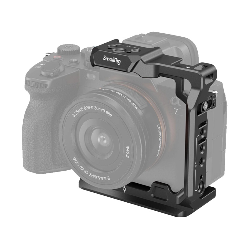 The SmallRig Half Cage for Sony a7R V / a7 IV / a7S III / a1 / a7R IV is made from aluminium alloy, steel, and silicone on the bottom to prevent damage to your camera body. The design still allows for full access to all buttons and controls on the camera. This Half Cage features an Arca-Type baseplate with a 1/4″-20 screw and locking side plate to secure the camera in place and allows for smooth transitions from handheld to tripod or compatible gimbal mounting.