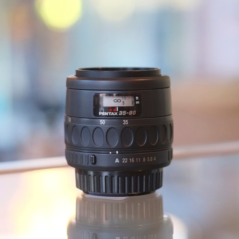 The SMC Pentax-F 35-80mm f4-5.6 is a compact standard zoom lens for Pentax K mount cameras. This lens will autofocus on compatible bodies, butit canbe used on any K mount camera without AF, too. In good condition, with minor cosmetic wear andlight internal