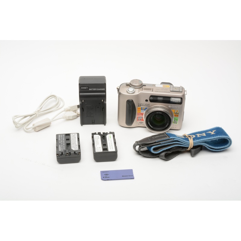 Excellent++ Condition, complete bundle, testedSony Cyber-shot DSC-S75 3.3MP Digital Point&Shoot CameraIncludes 2X batteries, charger, wide Sony strap, USB cable + 32MB Sony Memory Stick!Serial 3349600Cosmetically shows light signs of use, light marks or sc