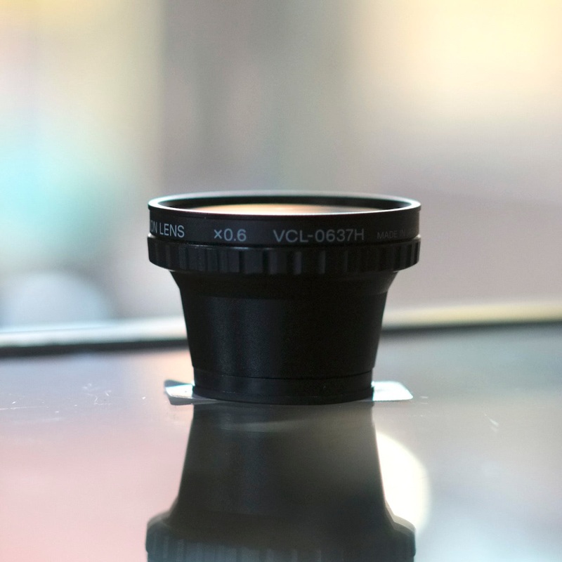 This is a well made wide angle conversion lens that provides a pretty decent 0.6x wide angle conversion. Designed to fit Sony's camcorders, this compact lens shoud fit anything else with a 37mm filter thread.