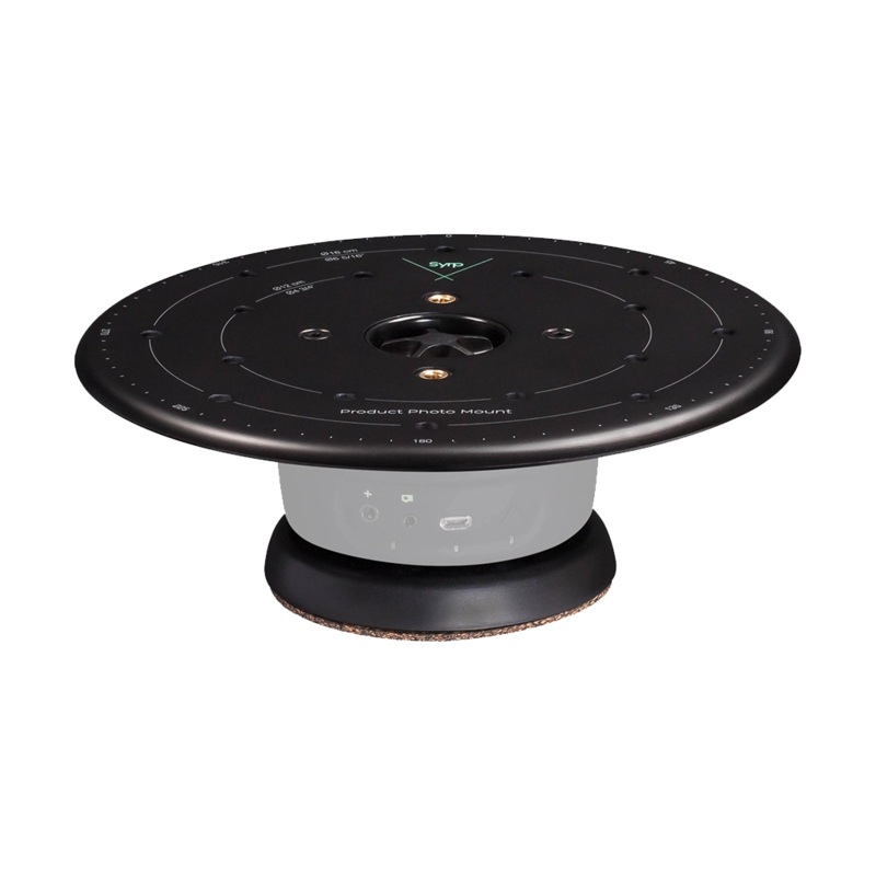 The Syrp 8 Aluminium Turntable Platform is specifically designed to work in conjunction with the Genie Mini time-lapse rotator. The turntable platform from Syrp features a cheese-plate design thats filled with several 1/4 -20 taps to ensure security when loading your product with a weight of up to 4 kg. The 8 Aluminium Turntable Platform can be used upside down or against the wall, all thanks to its taps; and when mounting it to the time-lapse rotator from Syrp the turntable will make a 360 rotation in 33 seconds enabling you then to capture impressive 360 images. Included in the package is a white and black cardboard background disk.