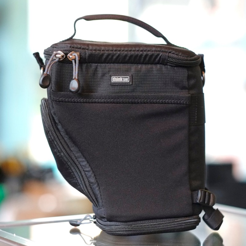 The Thinktank Digital Holster 20 v2.0 is a mid-sized padded holster-style case for a DSLR and professional lens. This is not a full kit bag- there's room for the camera and lens only- but it's good protection for a bit of working equipment. Expandable bott