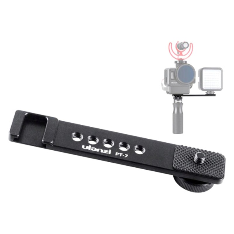 For Smartphone or Action Camera Cold Shoe Mount, 1/4"-20 Screw/Threads Mounts Microphone, Light, or Accessory 5" Horizontal Aluminum Bracket