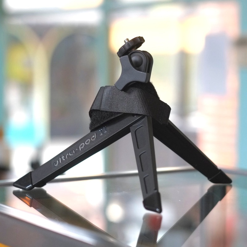 Not sure what happened to Ultrapod I, but this is an Ultrapod II, so it is what it is. The Ultrapod II is a lightweight folding tabletop tripod that can also be wrapped up against a pole or a tree or... something like that. Easy to carry, quick to set up.