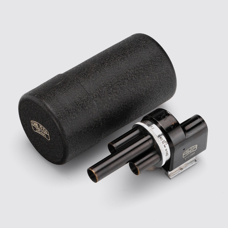--- Rare cine turret finder for 7.4x10.4mm format for lenses 2cm-18cm in nice condition in very interesting black fitted Carl Zeiss Jena metal box. --- B --- c.1935 --- 8599 --- Seltener Kino-Revolver-Sucher fr das Format 7,4x10,4mm fr Objektive von 2cm-18