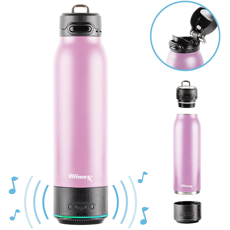 In The BoxUltimaxx Vacuum Insulated Premium Water Bottle with Rechargeable Bluetooth Speaker – Steel Double Wall Design + Lights, Convenient Drinking Spout, Lid Lock, and Carry Handle (700ml/23.6 oz)