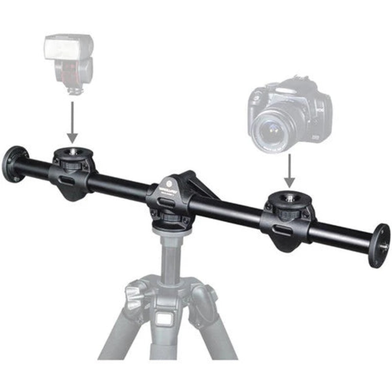 The Vanguard Multi-Mount 6 Tripod Utility Bar is an accessory that allows you to mount two cameras or other devices such as a flash units, spotting scopes, or tripod heads to a single tripod.