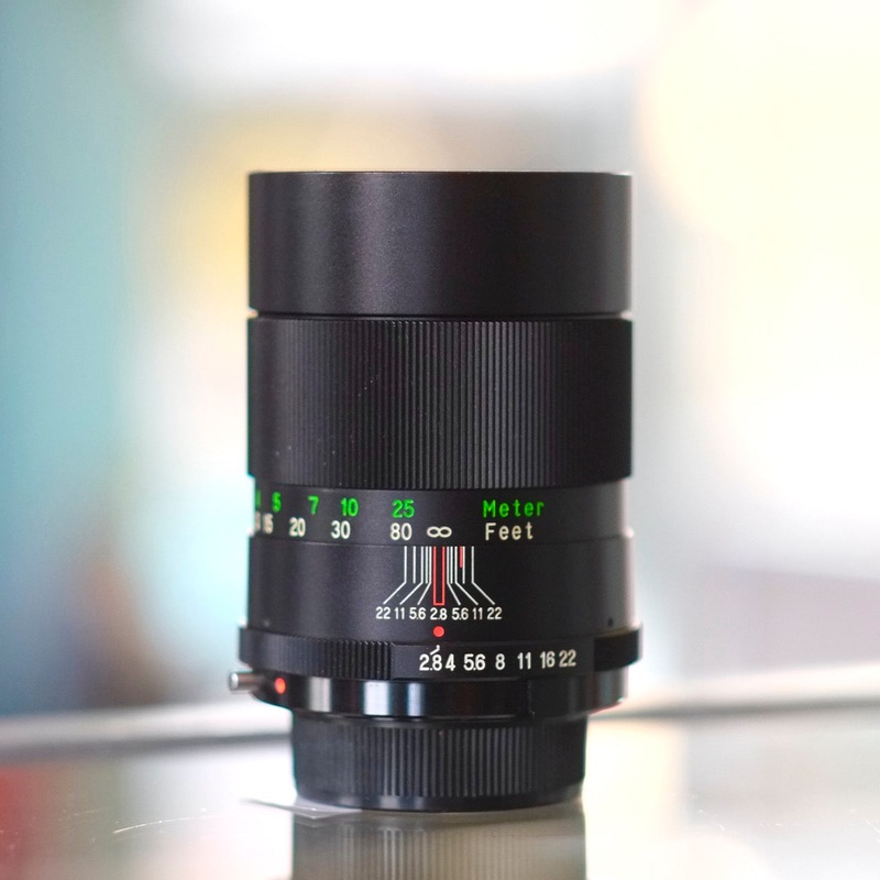 The Vivitar 135mm f2.8 Auto Telephoto is a manual focus telephoto lens for M42 thread mount. In excellent condition, with minor paint wear on the barrel; focus is smooth, diaphragm moves well, and glass is clean.