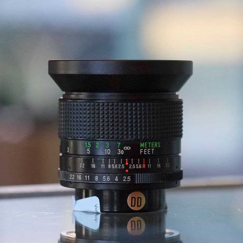 Your friendly neighbourhood Vivitar Auto Wide-Angle 28mm f2.5 is a wide angle lens for the M42 thread mount. Excellent cosmetic condition, with only light paint wear. Glass has minor dust. Good function.