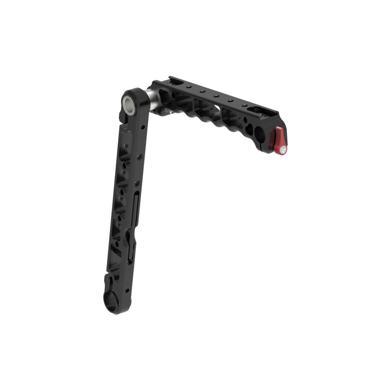 The top handle offers multiple 1/4 and 3/8 thread holes, two cold shoe attachments and a 15 mm integrated viewfinder adapter. The viewfinder adapter enables you to mount any third-party viewfinder or LCD screen from the top, via any of the Vocas NATO rail solutions.