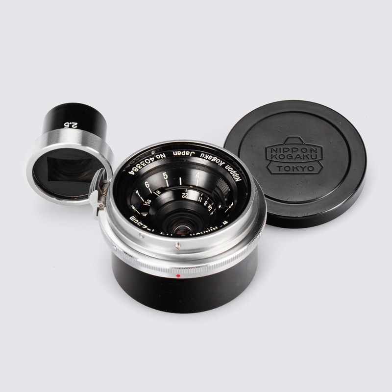 --- Mint 25mm Wide-angle for Nikon rangefinder with perfect clean lenses, both caps, 2.5cm BL Nippon Kogaku finder. --- A- --- 1956 --- 403384 --- Neuwertiges 25mm Weitwinkel fr Nikon Messsucherkameras mit perfekt sauberen Linsen, beiden Deckeln, 2,5cm Nip