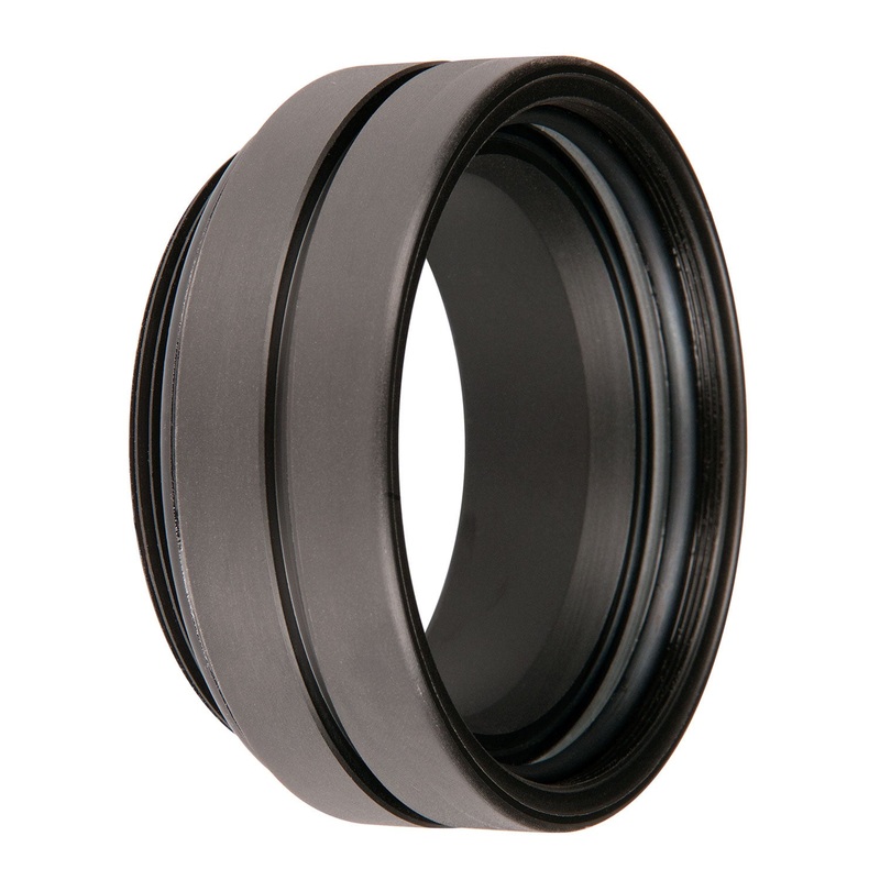 This port replaces the housing’s original front lens and is not removable underwater. External lenses may be removed and replaced underwater once the port is properly attached. Installation is easy, simply threading onto the front of the housing and checking for watertightness. The O-ring seal is visible through the inside of the housing. Installation requires strap wrench, not included.