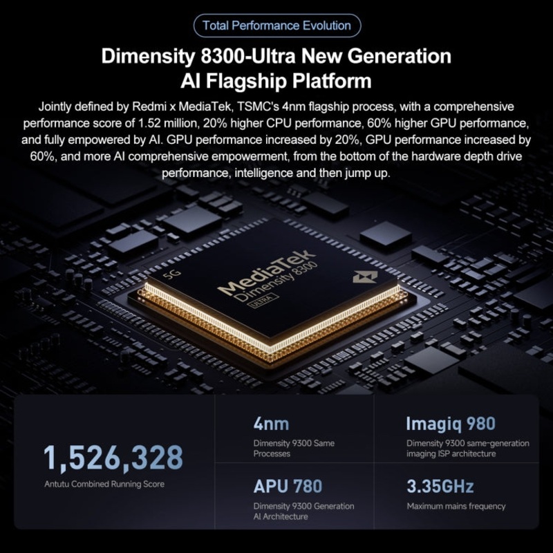 Redmi K70E comes with a 6.67-inch touchscreen display offering a resolution of 1220x2712 pixels. Redmi K70E is powered by an octa-core MediaTek Dimensity 8300 Ultra processor.It comes with 12GB of RAM. The Redmi K70E runs HyperOS and is powered by a 5000mA