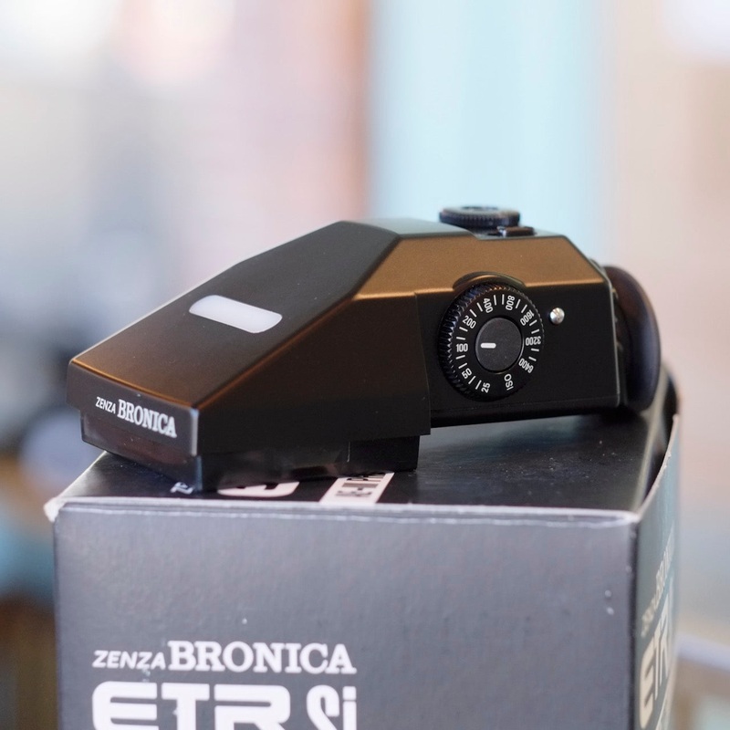 The Zenza Bronica AE-III Prism Finder E is a metering interchangeable prism for the Bronica ETR Si system. In good cosmetic condition and metering is accurate. Comes with original box.